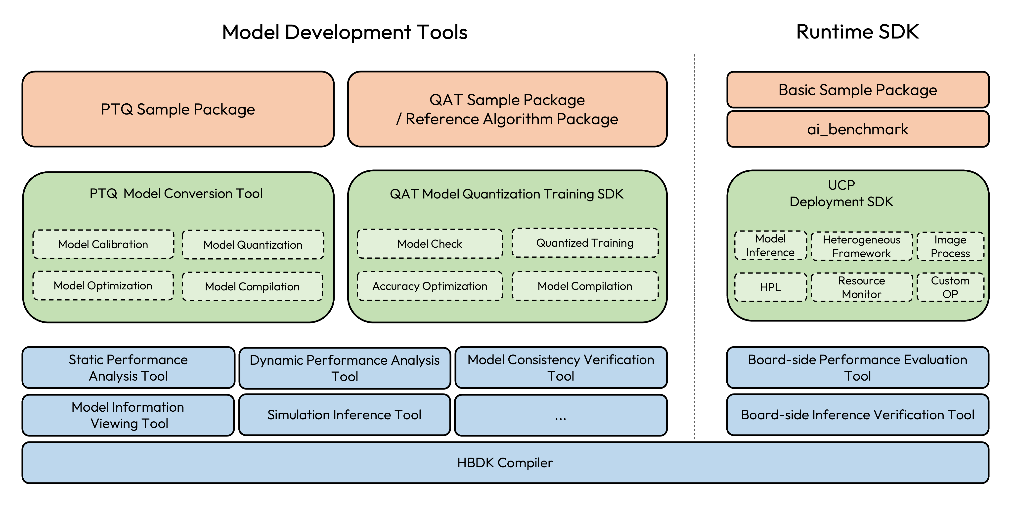 Runtime SDK provides runtime library support. The runtime library contains two parts, ARM and x86, which are used to execute models on Horizon computing platform and x86 simulation platform respectively.
