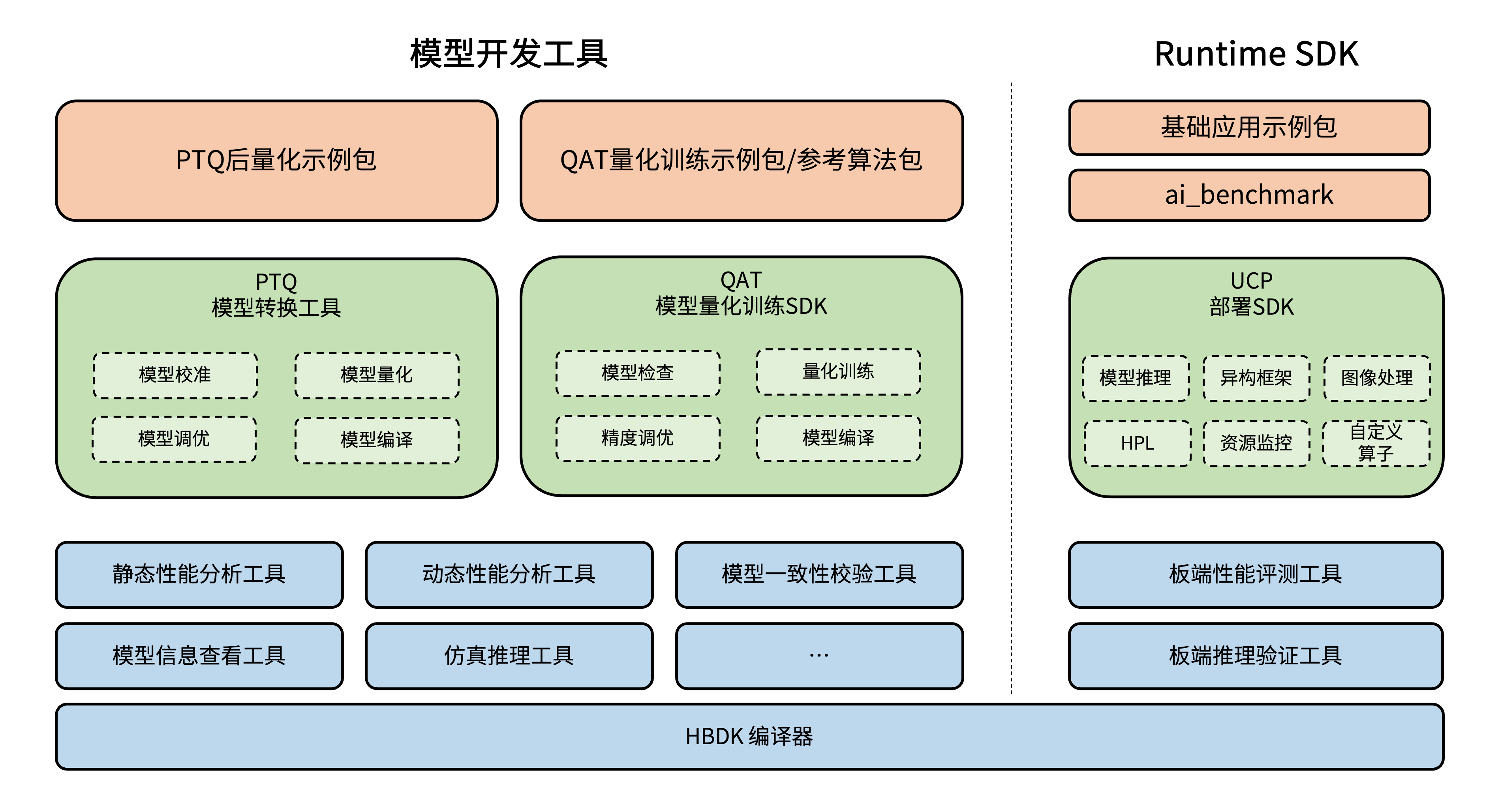 Runtime SDK提供了运行库支持,运行库包含arm和x86两个部分,分别用于在地平线计算平台和X86仿真平台执行模型。 有关嵌入式应用开发请阅读 模型推理应用开发指导 章节内容。